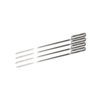 Комплект из четырёх массивных и прочных шампуров из высококачественной нержавеющей стали имеют V - образную конструкцию, что позволяет надёжно фиксировать куски мяса, не позволяя им проворачиваться в процессе жарки. Прочная конструкция предотвращает деформацию, а массивные D - образные ручки удобны при работе в рукавицах и подходят для использования внутри гриля.Материал: Высококачественная нержавеющая сталь