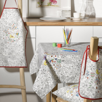 Изделия испанской компании Atenas Home Textile идеально подходят для ежедневного домашнего использования, поскольку не требуют особого ухода. Особое внимание дизайнеры компании уделили детям, поощряя их к созданию собственных уникальных предметов домашнего обихода. Фартук изготовлен из хлопка с добавлением полиэстера в пропорции 50/50. С помощью специальных фломастеров с водорастворимыми красками ребенок может раскрасить рисунок, сделав его неповторимым. Для стирки фартука рекомендуется применять обычный режим, при котором рисунок вернется в свое первоначальное состояние и его можно будет раскрашивать повторно. Количество стирок с полным удалением цвета (при условии использования специальных фломастеров) неограничено. Для сохранения черно-белого рисунка не рекомендуется использовать отбеливатель или химическую чистку. Гладить фарутк следует с изнаночной стороны. Фломастеры в комплект не входят! Благодаря изделиям от Atenas Home Textile вы имеете прекрасную возможность украсить дом шедеврами маленького художника.