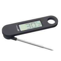 Особенности: подходит для самых разных задач: проверка приготовления мяса и курицы, проверка температуры масла для жарки во фритюре; большой светодиодный дисплей; складной щуп из прочной нержавеющей стали; измеряет температуру от -45 до 200 градусов по Цельсию; на упаковке нанесена таблица температур; питание от 1 батареи LR44