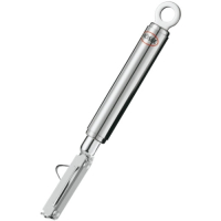 Очистка овощей и фруктов с тонкой и среднетонкой кожурой с помощью стабильно установленого, но подвижного лезвия. Лезвие позволяет срезать кожуру различной толщины. Заточенное лезвие сбоку позволяет удалить поврежденные места. Для особо быстрой чистки.