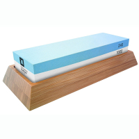 Перед началом работы рекомендуется намочить камень в воде. Затачивать нож рекомендуется держа его под углом 20 градусов. После использования камня, его необходимо протереть и высушить. В комплект входит бамбуковая подставочка.