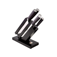 Лезвия из высококачественной нержавеющей стали обеспечивают исключительную остроту и комфорт в приготовлении пищи. Открытая конструкция подставки и устойчивое основание не только надёжно удерживают ножи, но и эффектно подчёркивают их выразительный дизайн.