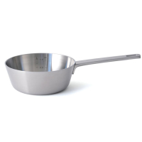 Ковш изготовлен из нержавеющей стали 18/10. Имеет 5-ти слойное дно и бесшовное соединенное с корпусом, что гарантирует быстрое и равномерное распределение тепла. Внутри нанесена мерная шкала. Благодаря толщине металла ручки нагреваются умеренно. Серия посуды RON отмечена наградами за дизайн и функциональность. Подходит для всех типов плит. Подходит для мытья в посудомоечной машине.