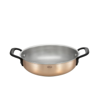 Посуда серии Copper Chalet - новинка 2017 года от компании Roesle. Впервые была представлена на выставке во Франкфурте, где заслужила положительные отзывы посетителей и жюри. Посуда идеальна как с точки зрения функциональности, так и по внешним характеристикам. При производстве этой серии использовалось несколько материалов, прекрасно дополняющих качества друг друга. Корпус изготовлен из нержавеющей стали, покрыт слоем меди для равномерного распределения тепла, а в дно посуды помещен алюминий для улучшения ее теплопроводности. Обод закруглен для безопасного переливания. Ручки изготовлены из эмалированного чугуна устойчивого к нагреву. Крышка выдерживает температуру до 260 градусов и имеет силиконовую вставку для плотного прилегания к сотейнику. Посуду рекомендуется мыть вручную без использования абразивных моющих средств. Подходит для приготовления на электрических, керамических, газовых и индукционных плитах, а также в духовках.