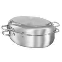 Жаровня Elegance изготовлена из высококачественной нержавеющей стали 18/10, подходит для всех типов плит, а так же для духовых шкафов. Благодаря емкости и форме, список блюд которые в ней можно приготовить, огромен. Кроме того, на внутреннюю поверхность крышки нанесено антипригарное покрытие ProPlex®, выдерживающее нагрев до 260 градусов, благодаря чему крышку можно использовать в качестве сковороды.