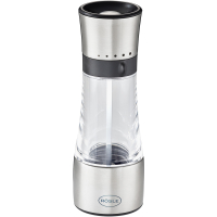 Особенности: мельница имеет 5 уровней помола, с регулировкой от мелкого до грубого; подходит для измельчения соли, перца горошком, а также всех видов сухих специй; не ржавеет даже при использовании соли