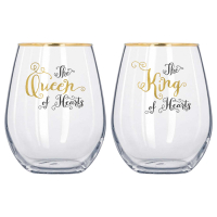 Стаканы изготовлены из прочного стекла. На каждом изображены знаковые персонажи из книги «Алиса в стране чудес». На одном от руки в черно-золотых тонах изображена Королева Червей, на другом - Король Червей. Набор станет идеальным подарком для пар, юбилеев или свадеб. Упакован в стильную коробку, а для того, чтобы открыть ее, необходимо решить головоломку: найдите вкладку «Потяни меня» на ленте и увидите скрывающийся внутри сюрприз! Подходят для мытья в посудомоечной машине.
