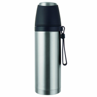 Дорожній термос із металевою колбою виготовлений із високоякісної нержавіючої сталі. Вставки із силікону забезпечать комфортне поводження з термосом. Кришка може бути використана як чашка. Спеціальний ремінець із силікону призначений для транспортування. Чудово підходить для гарячих та холодних напоїв.