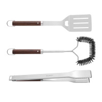 Набір для барбекю виготовлений із високоякісної нержавіючої сталі та є незамінним комплектом, оскільки включає найнеобхідніші інструменти для приготування на грилі. Завдяки довгим рукояткам, виготовленим з натуральної деревини, ваші руки будуть на безпечному віддаленні від джерела жару і при цьому ви зможете контролювати процеси всередині гриля. Предмети забезпечені петлею для зберігання у підвісному стані. Рекомендується ручне миття.