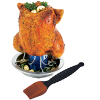 Чудова стійка для курки з високоякісної нержавіючої сталі допоможе Вам максимально рівномірно посмажити цілу курку, а нижній піддон збереже всі дорогоцінні соки. Комплект включає стійку і металевий піддон для жиру. Матеріал: Високоякісна нержавіюча сталь