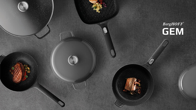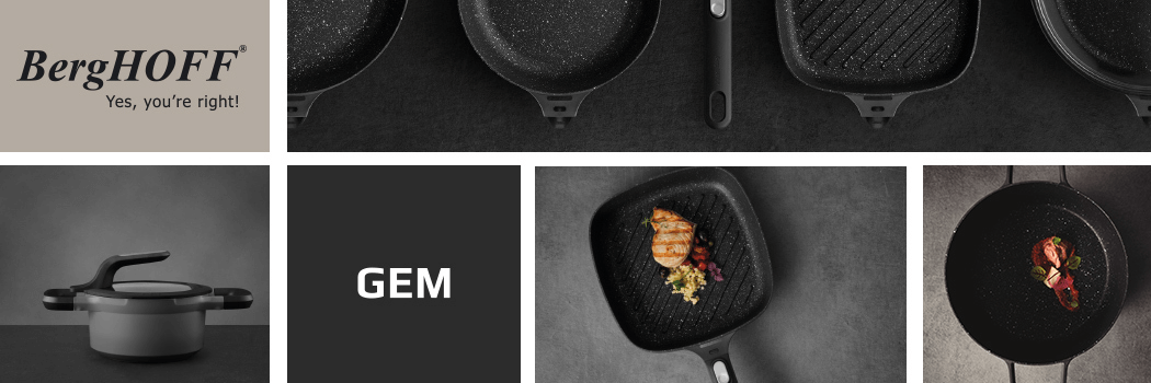 Натхненна елегантними силуетами автомобілів преміумкласу, колекція посуду Gem від BergHOFF Gem була наділена витонченими лініями та мужнім монохромом. Вдале поєднання відтінків, фактур та матеріалів робить цей посуд універсальним в питанні естетики – він буде актуальним на кухні в стилі лофт, індастріал, артдеко, модерн, хайтек та у скандинавському стилі.