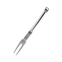 Вилка для м'яса виготовлена із нержавіючої сталі 18/10. Має об'ємну ергономічну ручку з підвісною петлею. Поліровка матова. Підходить для миття у посудомийній машині.