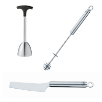 Набір для сніданку складається з трьох інструментів: ножа, ложки для меду та розрізача яєчної шкаралупи. З цим набором ваш сніданок буде проходити комфортно та акуратно. Предмети виготовлені із високоякісної нержавіючої сталі 18/10. Можна мити в посудомийній машині.