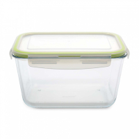 Контейнер виготовлений із боросилікатного скла. Матеріал термостійкий, витримує різкі перепади температури. Кришка із міцного поліпропілену забезпечує збереження продукту. Можливе використання в духових та мікрохвильових печах як форми для запікання. Можна мити в посудомийній машині.