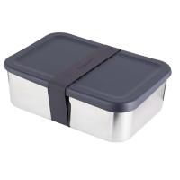 Ланч-бокс виготовлений із нержавіючої сталі, кришка – з поліпропілену. Додатково має силіконову петлю для утримання кришки. Ідеально підійде для пікніків. Підходить для миття у посудомийній машині.