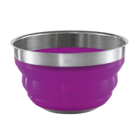 Декоративна миска підходить для приготування та зберігання харчових продуктів. Силіконові сторони легко складаються для компактного зберігання та компактного очищення в посудомийній машині. Колір фіолетовий. Діам. 24 см.
