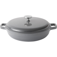 Новинка від ТМ BergHOFF – колекція посуду GEM. Сотейник виготовлений із чавуну. Усередині покритий емаллю кремового кольору. Зовні – глянсова емаль сірого кольору. Кришка виготовлена з чавуну, покрита глянсовою емаллю сірого кольору. Завдяки товстим стінкам, які акумулюють і довго зберігають тепло, сотейник ідеально підходить для гасіння, приготування рагу або спекотне. Підходить для використання на всіх сучасних типах плит. Рекомендується ручне миття.