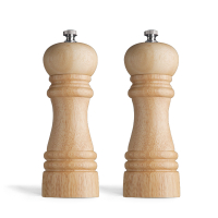 Набір для спецій складається з двох млинів, що виконані у класичному дизайні. Млини виготовлені з міцної деревини, мають відполіроване до глянсового блиску покриття. Фіксатор на кришці забезпечує легкість у виборі зернистості помелу.